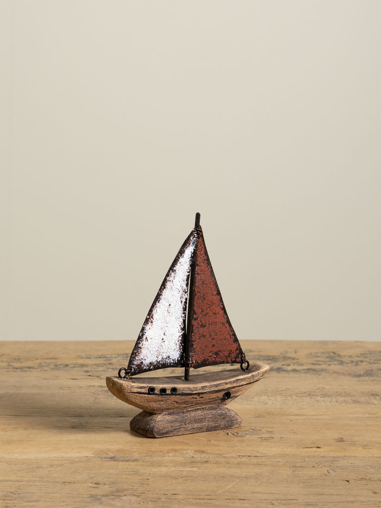 Petit bateau voile en fer rouge