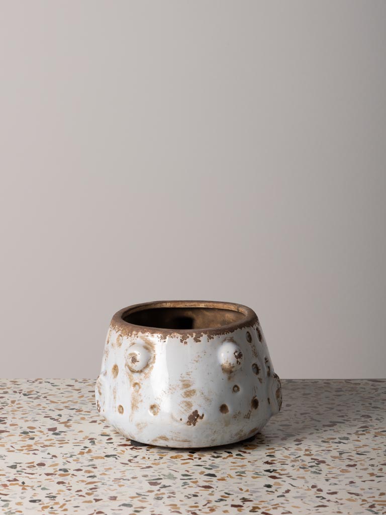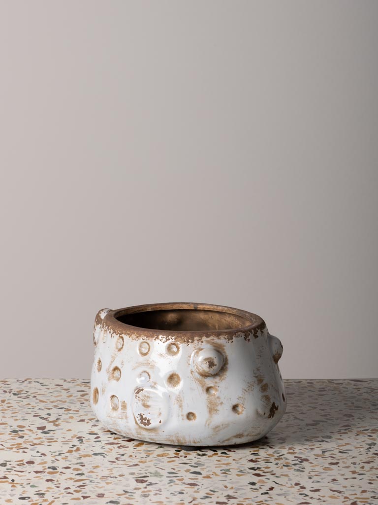 Le petit cache-pot poisson blanc incarne le charme artisanal et la délicatesse décorative qui définissent les créations raffinées de Chehoma. Ce bel objet se distingue par sa forme originale inspirée de la nature et des fonds marins. Réalisé en grès, il séduit par sa texture douce et légèrement irrégulière, propre aux pièces façonnées à la main. Sa teinte blanc lumineuse évoque la pureté et la simplicité tout en apportant une touche apaisante à la décoration. Grâce à son design soigné, le petit cache-pot poisson blanc se fond facilement dans tous les intérieurs, apportant une note d’élégance naturelle. Il accueille aussi bien des plantes grasses, des fleurs séchées que de petits végétaux décoratifs. Chaque création Chehoma valorise la beauté des formes organiques et le charme des matières naturelles.