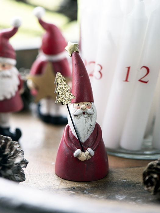 On craque pour ce petit père noël tenant un petit sapin signé Ib Laursen. Il sera parfait comme sujet pour votre déco de noël. Mettez-le sous cloche avec pommes de pin, glands, etc… et il fera son petit effet. Il pourra servir comme élément décoratif dans un centre de table, etc…. Petit père noël Ib Laursen en bois. Dimensions : Diam (3.2cm) – Hauteur (8cm).