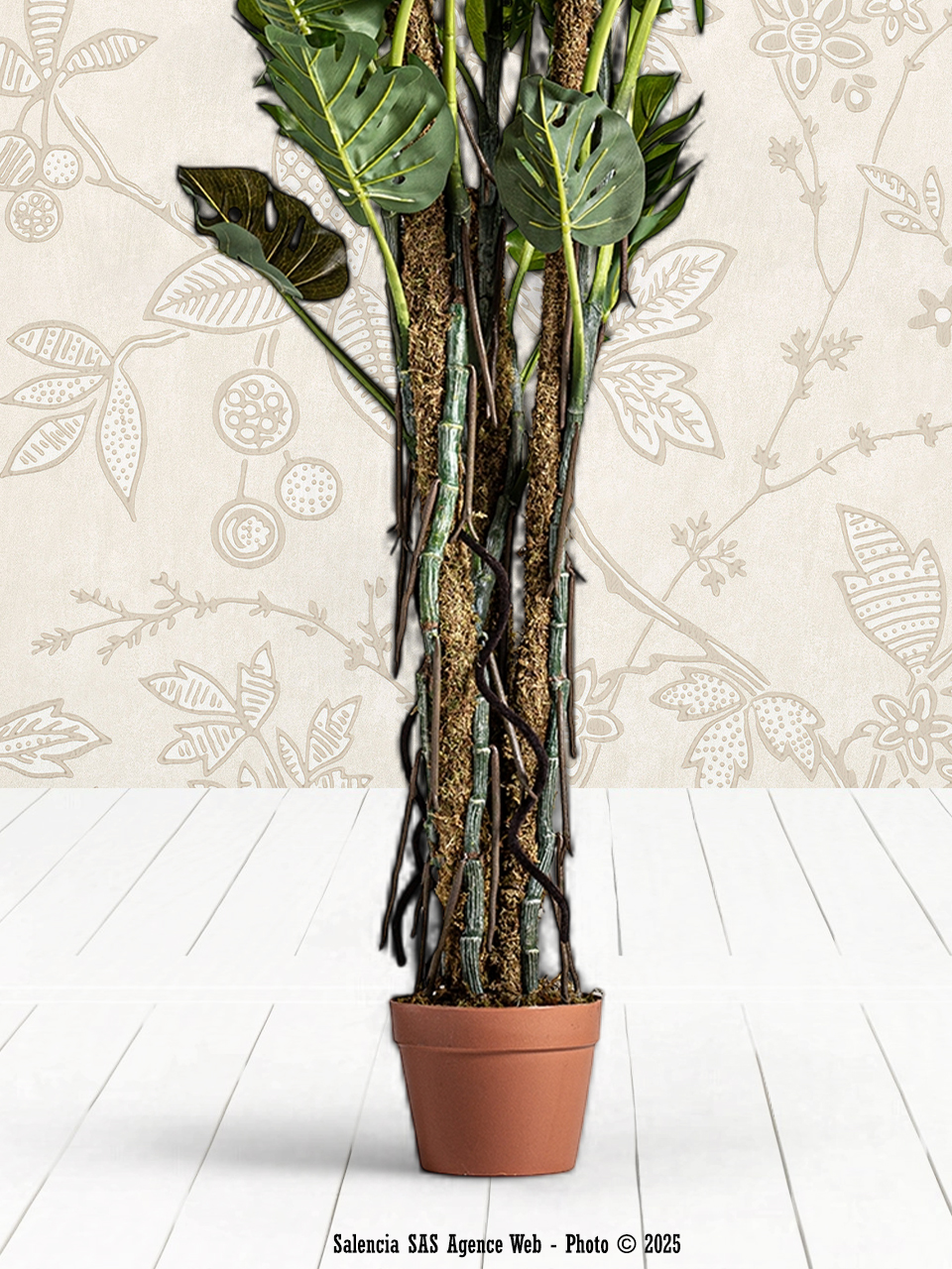 Par ailleurs, la Plante Vical est fabriquée en plastique et polyester, des matériaux qui garantissent sa durabilité et facilitent son entretien. Ces matériaux imitent parfaitement les textures naturelles du feuillage, ce qui rend la plante presque indiscernable d’une vraie. Son format s’adapte aisément à différents espaces, que ce soit un salon, un bureau ou une entrée. En effet, elle offre un volume élégant, sans prendre trop de place, ce qui en fait une solution décorative pratique et esthétique pour divers environnements.