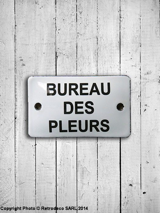 Plaque de porte émaillée Bureau des Pleurs déco rétro