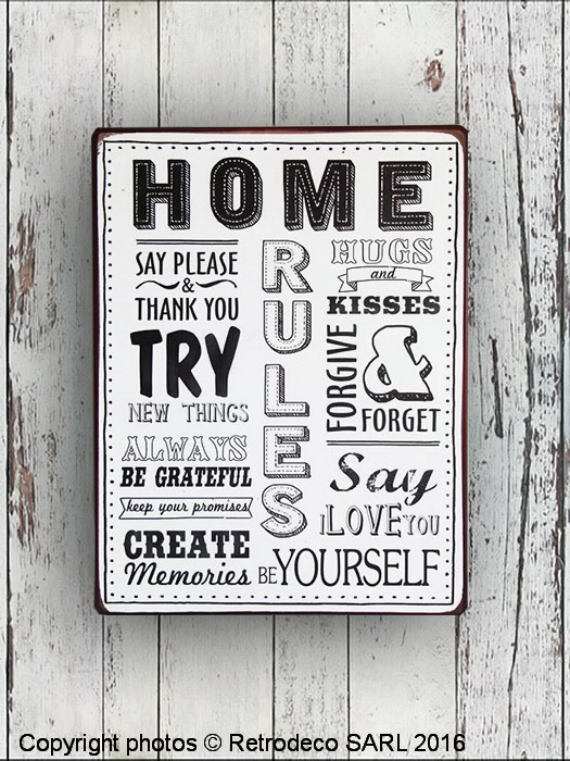 Plaque décorative en métal patiné Home à accrocher dans toutes les maisons. Une excellente idée cadeau. Dimensions : L26.5cm – h35cm.