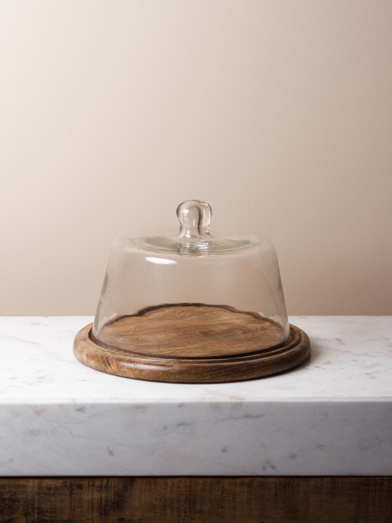 Le plat en manguier avec cloche Cookie de la collection Chehoma est un accessoire élégant qui combine fonctionnalité et charme rétro. Fabriqué avec un plateau en manguier de haute qualité, ce plat est surmonté d’une cloche en verre transparent.