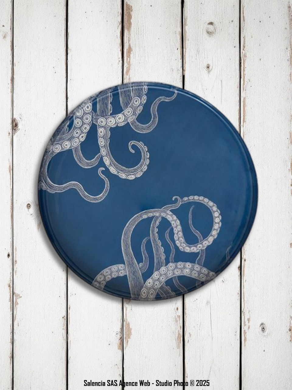 Plateau en métal Pieuvre bleu