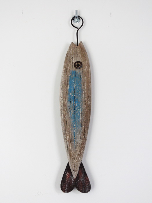Poisson bleu en bois de récupération avec sa queue en métal à suspendre pour une ambiance déco bord de mer. Son oeil est une rondelle de métal. A associer avec le poisson rouge de la même collection à découvrir dans la même catégorie. Poisson bleu queue rouille Chehoma. Découvrez sur notre site les objets déco bord de mer Chehoma. Dimensions : L6cm – P1cm – H33cm.