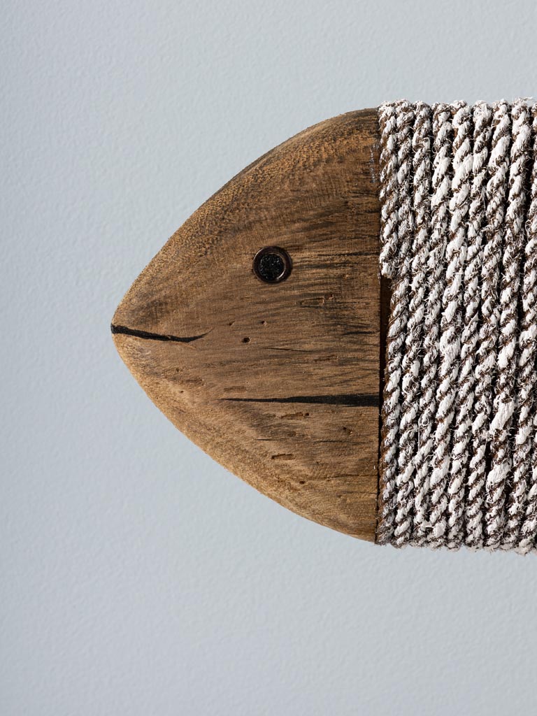 Par ailleurs, le poisson emmitouflé base métal doit beaucoup de son charme au jeu des matières et des couleurs. Le socle en Paulownia, bois léger au veinage délicat, apporte une base naturelle et chaleureuse qui rappelle les planches des pontons et le bois flotté. Le corps du poisson, travaillé en métal, offre des détails fins : relief des écailles, forme de la nageoire, expression presque tendre du museau. La teinte Marron, nuancée et légèrement patinée, évoque aussi bien les cordages vieillis que les rochers chauffés par le soleil. Installé sur une étagère, une console ou un rebord de fenêtre, l’objet dialogue avec coquillages, bougies, paniers en fibres et textiles rayés, construisant peu à peu un décor de déco bord de mer fait de souvenirs et de petites trouvailles.