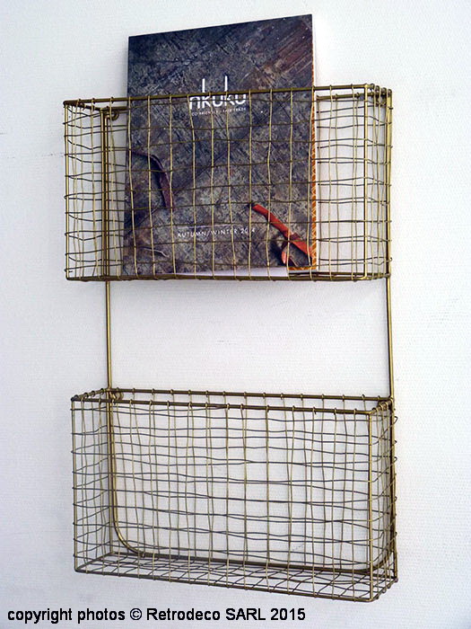 Ce double porte-revues mural en métal effet cuivre antique à suspendre vous sera d’une grande utilité pour y ranger documents ou magazines au bureau ou chez vous. Une création ambiance déco scandinave de chez Madam Stoltz. Dimensions : 33.5cm – 9.5cm – 50.5cm.