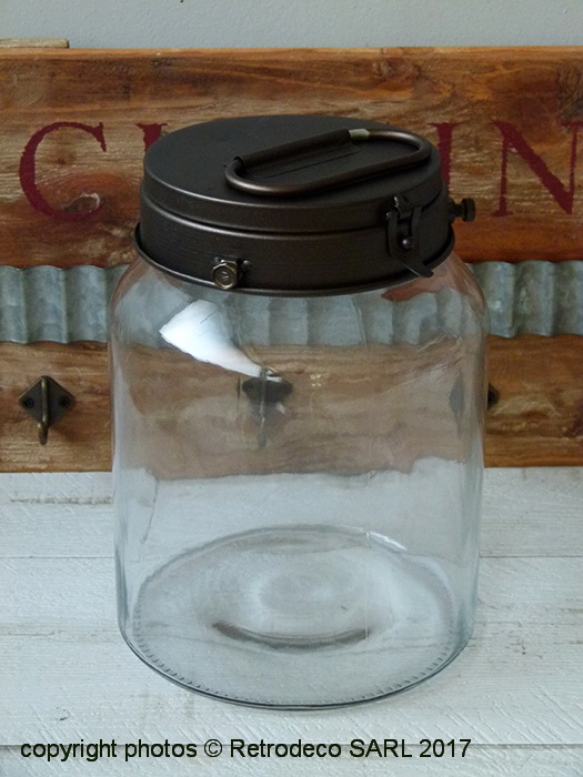 Ce pot de conservation hermétique gardera bien au sec gâteaux, etc… On aime la fermeture de son couvercle, sa grosse poignée, ainsi que les rivets qui lui donnent tout son look atelier. Vous pourrez également y conserver toute autre chose. Bocal de conservation Antic Line. Dimensions : Diam (16cm) – Hauteur (22cm).