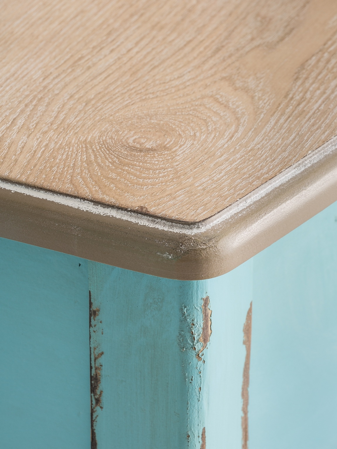 Pupitre Leiden en bois patiné vert-bleu déco brocante