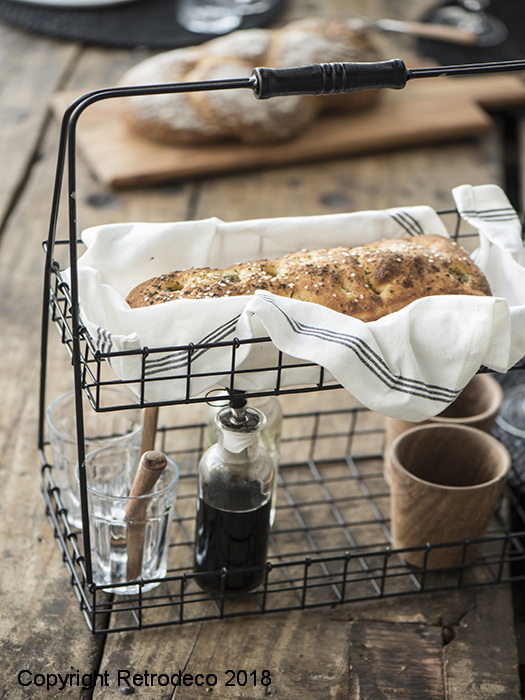 Très pratique en cuisine, ce rangement en métal noir deux niveaux avec sa petite poignée en bois vous permettra d’avoir sous la main condiments, huilier, sel, poivre, broc, etc… tout en apportant une touche campagne à votre cuisine. N’hésitez pas à l’installer également dans une salle de bains ou dans un bureau pour y ranger stylo carnets, etc… Rangement deux niveaux Ib Laursen. Dimensions : L35cm – l18.5cm – h46cm.