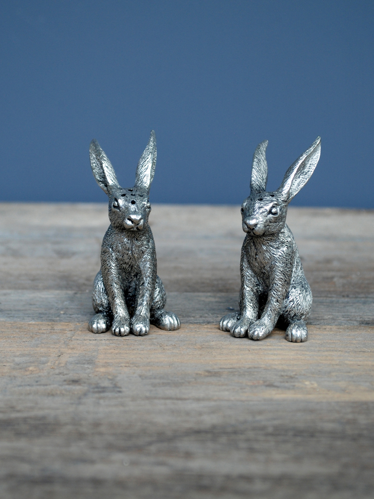 Salière et poivrière métal argenté Lapin déco brocante Chehoma