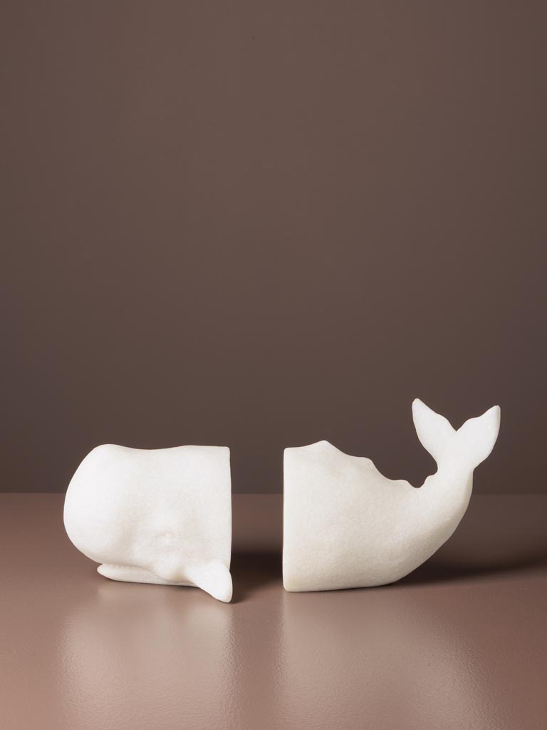 La serre-livres baleine blanche de Chehoma semble surgir des pages pour accompagner silencieusement toutes les histoires de mer. Sa silhouette de cétacé, stylisée et bien équilibrée, transforme une simple rangée d’ouvrages en véritable petite scène de décor. Réalisée en Résine, elle permet un modelé précis : courbes du dos, forme de la queue, rondeur du museau, tout évoque le mouvement calme de l’animal. Sa teinte Blanc, douce et lumineuse, rappelle les bois flottés blanchis par le sel, ce qui en fait une pièce idéale pour une ambiance de déco bord de mer apaisante et lumineuse.
