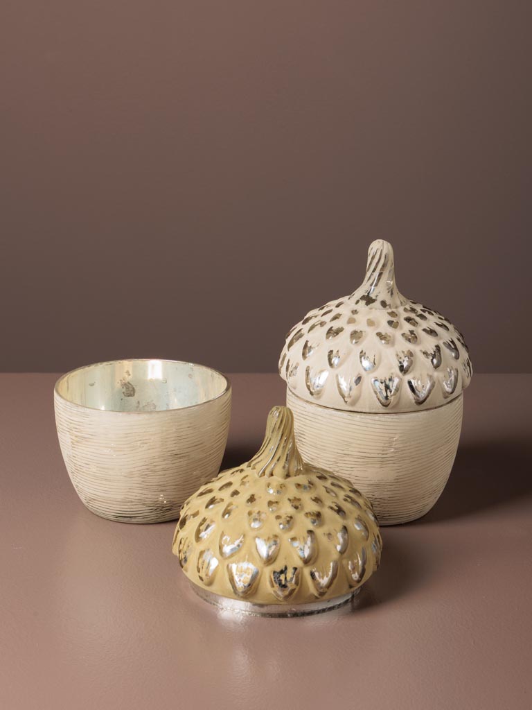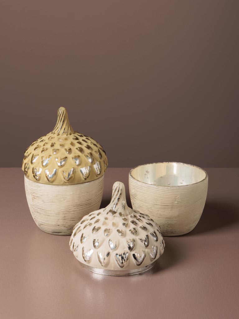 De plus, le set de 2 boîtes en verre glands argentés et dorés séduit par sa polyvalence et son esthétique intemporelle. Fabriqué en verre de qualité, il assure durabilité et élégance, tout en permettant de mettre en scène son contenu avec subtilité. Les nuances beige présentes sur les contours des couvercles renforcent le charme naturel de l’ensemble. Ce Boites Chehoma trouve sa place aussi bien dans une cuisine rustique que dans un salon inspiré par la déco campagne chic. Les glands décoratifs, détail original et raffiné, introduisent une note végétale et automnale, tout en évoquant la nature dans un langage esthétiquement maîtrisé. Placées sur une étagère, une table de service ou un buffet, elles attirent le regard et structurent la décoration avec douceur.
