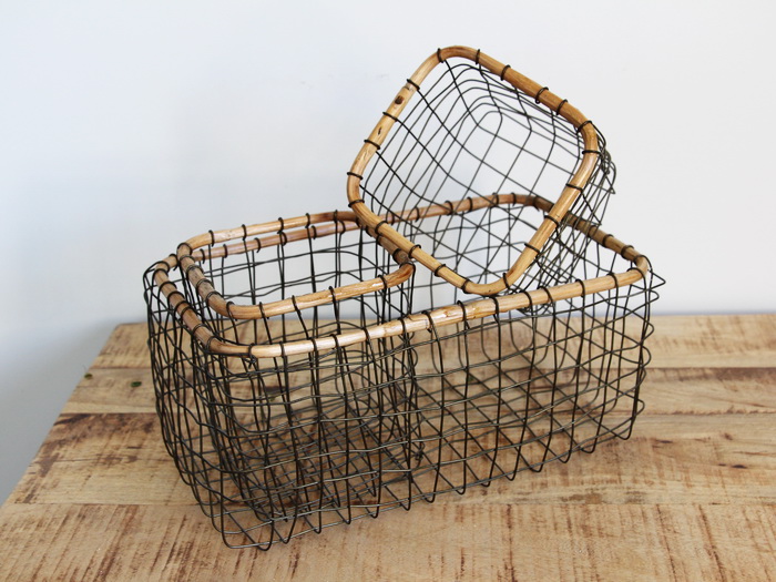 Set de 3 paniers fil de fer bordure bois Madam Stoltz