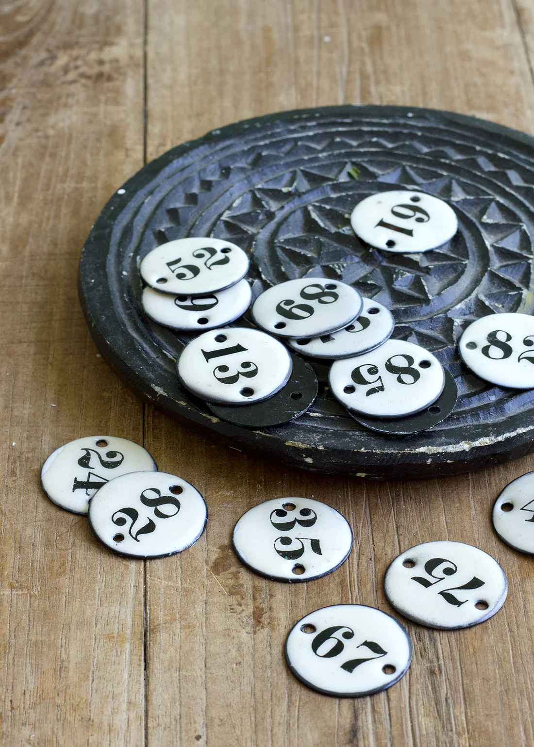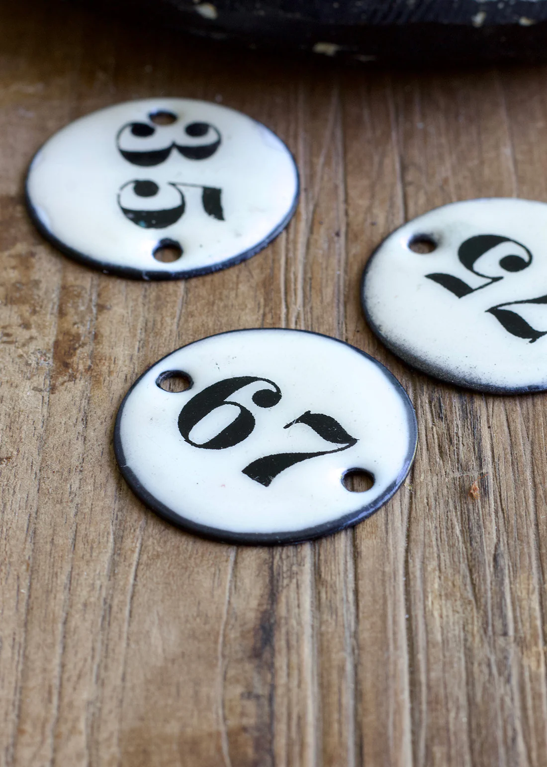 Attention: les numéros de ces plaques émaillées ne se suivent pas, ils vont de 1 à 99 au hasard.