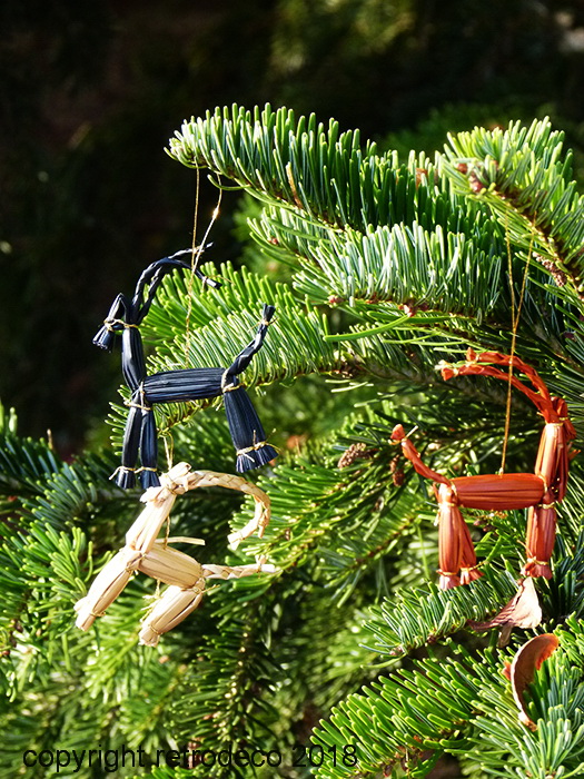 Set de 6 rennes de noël en paille naturelle, noire et orange brûlée à suspendre dans votre sapin. On aime l’esprit naturel de ces rennes de noël bien craquants. Déco de noël Madam Stoltz. Dimensions : Hauteur (6cm).