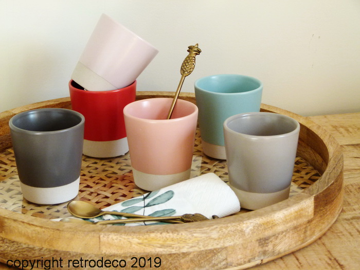 On craque pour ce set de 6 tasses expresso ou à café en céramique aux couleurs pastel. On aime leur finition bicolore qui leur donne toute leur authenticité. Compatibles lave-vaisselle et micro-ondes. Set de 6 tasses expresso Athezza. Dimensions : Diam (6.5cm) – Hauteur (7cm)- Contenance : (10cl).