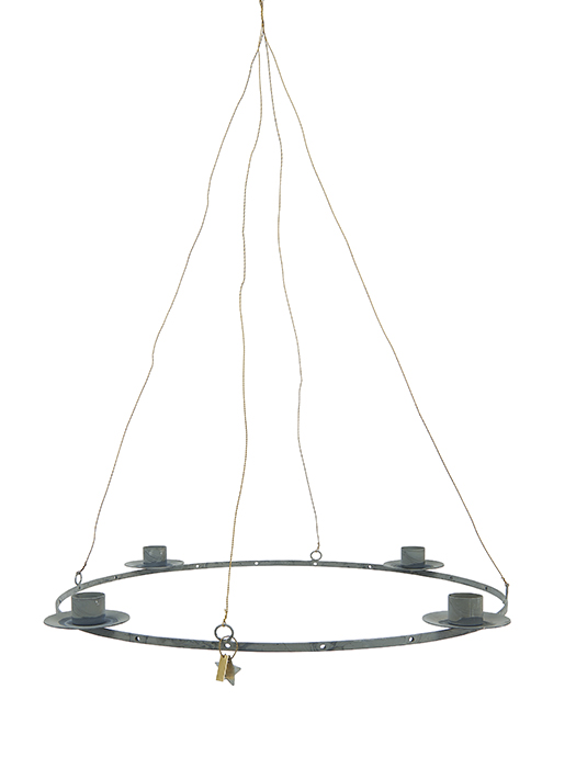 Support pour bougies de l’Avent en métal gris à suspendre pour votre déco de noël. Il vous permettra de faire une déco personnelle en créant avec des végétaux, glands, pommes de pin, etc votre propre couronne de l’Avent. Support pour bougies de l’Avent Ib Laursen. Pour bougies format standard. Petit fil de fer métallique laiton pour le suspendre. Dimensions sans le lien : Diam (34.5cm) – Hauteur (4.5cm).