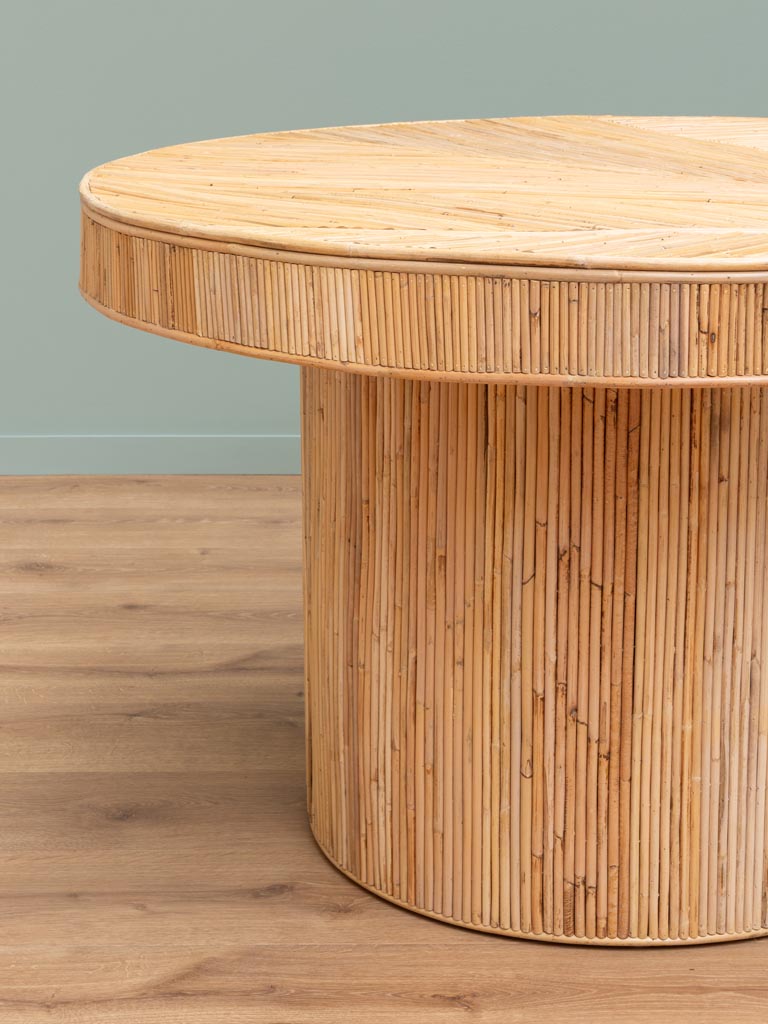 Le style de Chehoma se reconnaît dans la finesse des détails et dans le choix de matières nobles. Le Rotin utilisé pour cette table assure une durabilité appréciable, ce qui en fait un investissement décoratif et fonctionnel. Sa teinte beige crée un contraste subtil avec des chaises en bois foncé, en métal noir ou en tissu naturel. Cette polyvalence permet de composer un espace personnalisé selon les envies. La table peut accompagner une décoration minimaliste ou s’intégrer dans une ambiance plus expressive. Grâce à son design intemporel, elle traverse les tendances sans perdre de son charme. La Table Chehoma devient ainsi un point d’ancrage visuel qui met en valeur les objets environnants et crée une atmosphère douce et accueillante. Elle s’adapte aussi bien aux repas quotidiens qu’aux grandes occasions, car elle allie légèreté et élégance.