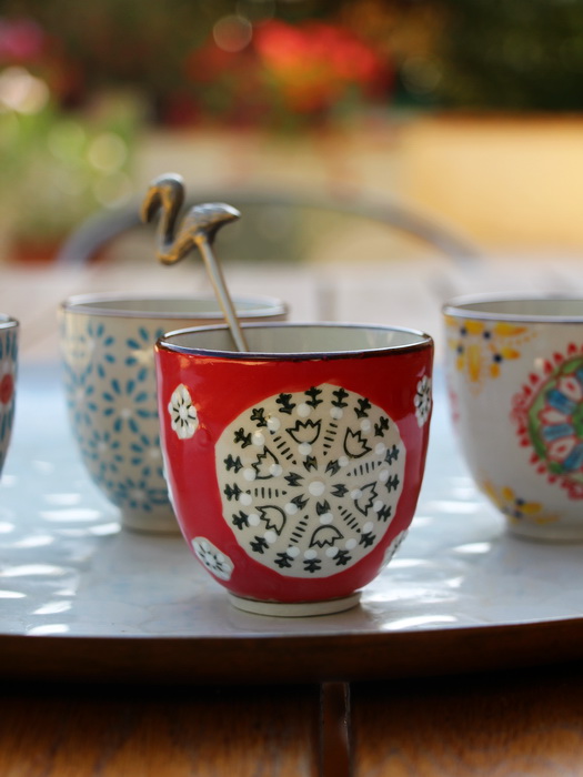 Tasse expresso Bohémian rouge et vert déco ethnique chic