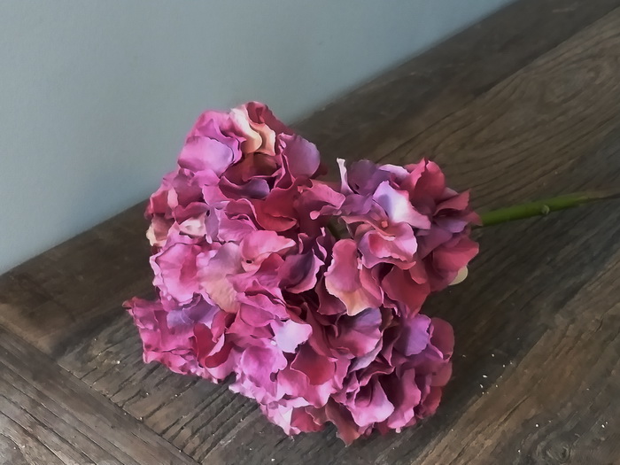 Tige d’hortensia rose à mélanger à d’autres fleurs ou d’autres boules d’hortensias pour créer votre propre bouquet de fleurs artificielles pour une déco de charme de votre intérieur. Fleurs de qualité en tissu. Entretien : un coup de sèche cheveux ou dehors sous une pluie fine. Dimensions : Longueur de la tige (52cm) – Diam (20cm environ).