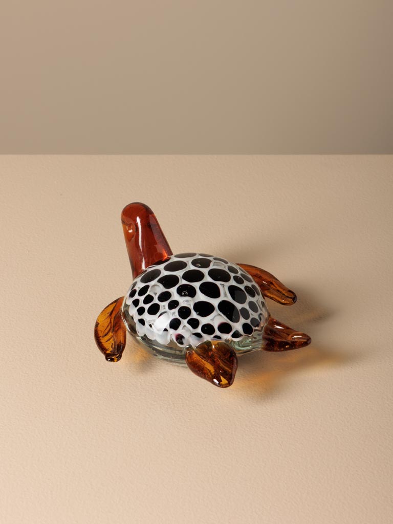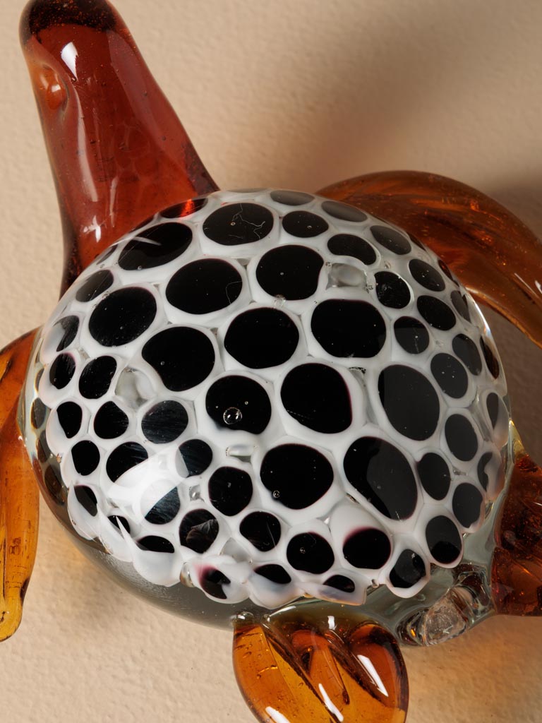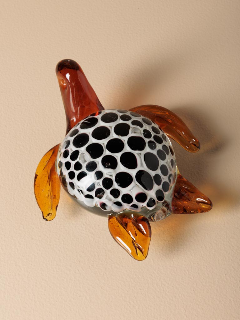 Enfin, la tortue en verre fleurie révèle le talent de Chehoma pour marier artisanat du verre et imagination créative dans des objets à la fois décoratifs et symboliques. Chaque pièce, soufflée ou modelée avec soin, capture une lumière unique qui fait vibrer les fleurs emprisonnées dans sa matière transparente. Elle s’accorde naturellement avec d’autres éléments de la collection, formant des ensembles thématiques pleins d’élégance et d’originalité. Symbole de patience, de protection et de renouveau printanier, cette tortue transcende sa fonction ornementale pour incarner un message de quiétude durable. Ainsi, elle invite à ralentir le temps, à contempler la beauté hybride du règne animal et végétal, et à enrichir son intérieur d’une touche artisanale intemporelle et profondément apaisante.