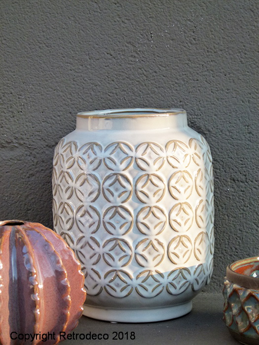 Ce vase en céramique crème avec ses motifs taupe clair recevra vos plus beaux branchages ou fleurs et donnera à votre intérieur une ambiance authentique et naturelle. Vase Madam Stoltz. Dimensions : Diam (18cm) – Hauteur (22cm).
