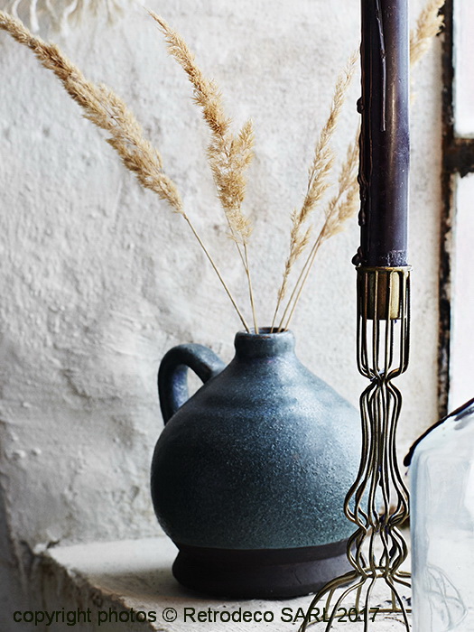 Vase rond terracotta bleue déco naturelle Madam Stoltz