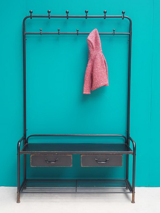 On craque pour ce vestiaire Lupin en métal patiné noir. Idéal et très pratique, il vous permettra de tout ranger dans une entrée. Il est composé de deux tablettes qui vous permettront d’y ranger vos chaussures ainsi que deux tiroirs pour ranger gants, écharpes, bonnets. 11 crochets permettent de suspendre vos vêtements. Un vestiaire qui s’inscrit dans beaucoup d’ambiances et notamment dans une ambiance industrielle et atelier. Vestiaire Lupin Chehoma. Découvrez sur notre site toute la collection Lupin Chehoma (commode, bureau, étagère, etc…). Dimensions : L104cm – P35.5cm – H186cm. Précision: appeler pour vérifier la disponibilité.